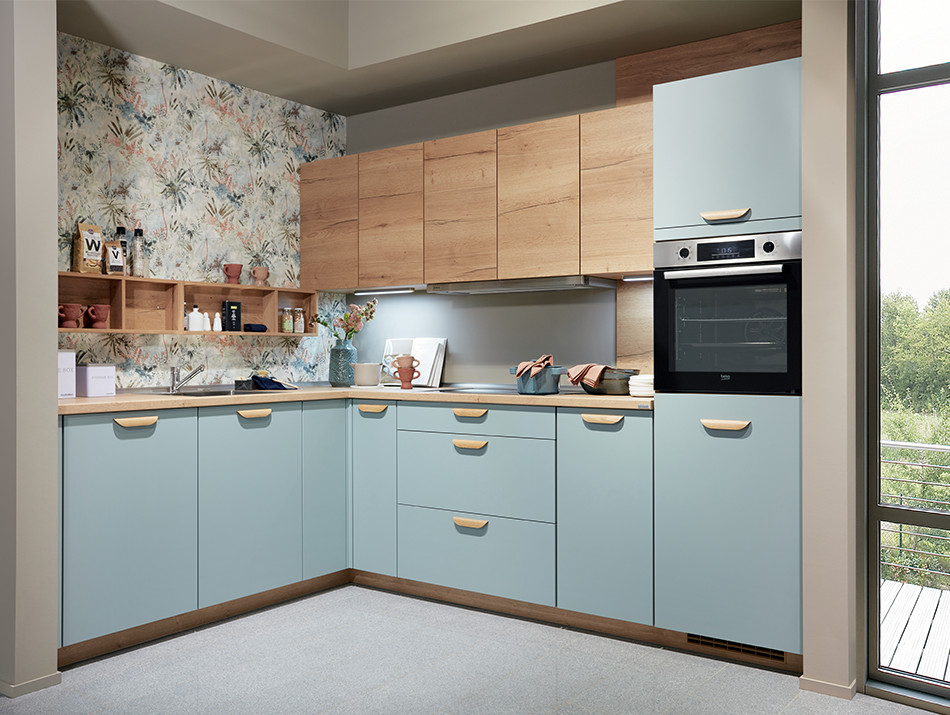 Façade : Post formée recouverte d'une feuille PET laquée mat anti-UV, avec chants polymères horizontaux assortis à la façade. Intérieur de porte blanc