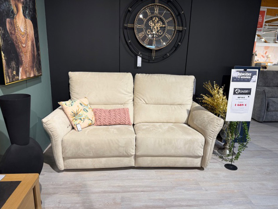 Canapé 3 places, avec option relax et option zen (têtières électriques).