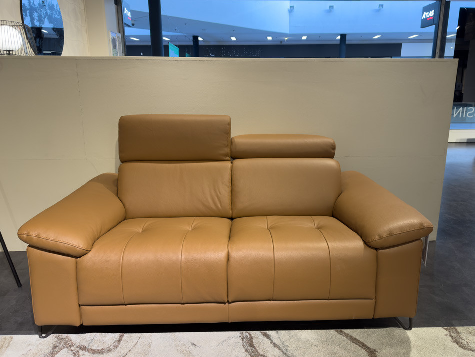 Canapé 2 places en cuir avec têtières mobiles.