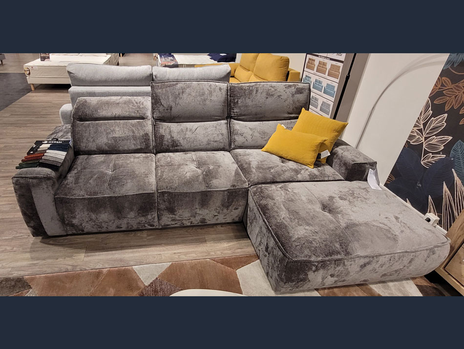Canapé d'angle avec coffre et assise coulissante.
