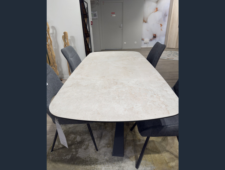 Table en céramique avec 1 rallonge pivotante de 50 cm.