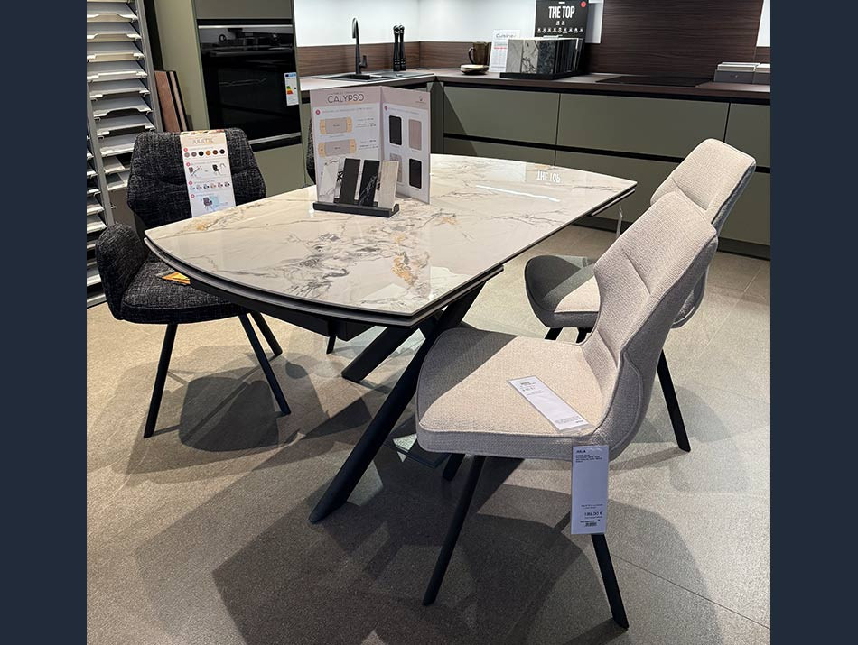 Table céramique 150*90 cm avec 2 allonges.