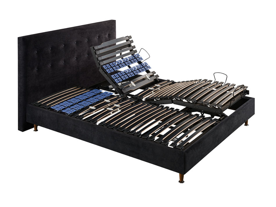 Technologie : Au choix 3 types de matelas : - Matelas Détente mousse haute résilience à cellules ouvertes à base d'extraits de soja, 15 cm densité 35 kg/m3. - Matelas Absolu latex auto ventilé grâce à de nombreux canaux d'aération horizontaux, latéraux et transversaux, 16 cm latex 7 zones densité 78 kg/m3 version medium ou 16 cm latex 7 zones densité 83 kg/m3 version ferme - Matelas Douceur ressorts ensachés 7 zones de confort qui s'adaptent point par point à la morphologie du corp et avec une indépendance de couchage optimale. 6 cm de mousse HR densité 35 kg/m3, 8 cm ressorts ensachés et 3 cm mousse HR densité 35 kg/m3 Epaisseur Matelas : Matelas Détente 20 cm Matelas Absolu 21 cm Matelas Douceur 22 cm Epaisseur Sommier Cadre : Bois 20 cm Tissu déco 18 cm Accueil et soutien : Matelas Détente accueil tonique et soutien ferme Matelas Absolu accueil médium et soutien ferme Matelas Douceur accueil tonique et soutien ferme Coutil : 100 % polyester , plate-bande déco 3D Structure sommier : Sapin latté ou multiplis dans la version Bois. Vérins motorisés puissants et silencieux. 2 moteurs indépendants et renforcés avec remise à zéro. Têtière translation de série qui amène un dégagement du bassin particulièrement adaptée en position assise. Structure et mécanisme de relevage renforcés pour une sécurité et une longévité accrue. Barres de renfort pieds pour un usage en toute sécurité quelque soit la position Origine du produit : France Garantie Atlas : Matelas 5 ans Sommier + moteur 5 ans Plus produit Atlas : radio fréquence en option Technologie : Ensemble literie relaxation avec matelas au choix Structure sommier : Technologie V-LINE : chacune des partie a son moteur et sa mécanique indépendante en acier. Plusieurs traverses en hêtre massif, 2 au centre de la caisse pour maintenir les longs pans droits. 2 traverses métalliques tête et