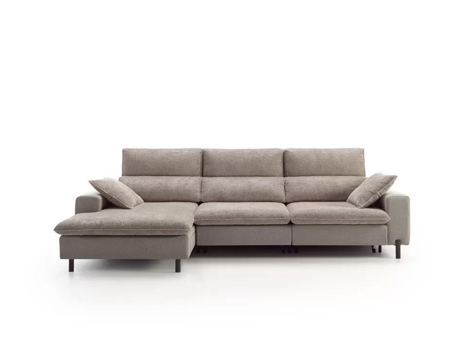 Structure : Bois de pin + planche en bois DM Suspension : Ressort en acier type ZZ et bande élastique 8cm Garnissage : Assise mousse polyuréthane Acofoam recouverte de fibres Dossier avec têtière réglable fibres creuses et siliconées Accoudoirs mousse polyuréthane densité 28 kg/m3 Piètement : Métal coloris brun hauteur 13.5 cm Garantie Atlas : 2 ans Information centrale : Photos non contractuelles Articles vendus séparément Les mesures peuvent varier de plus ou moins 5 cm Revêtement : Bi-matière et bi-ton Tissu gala 100 % polyester, martindale > 35000 Tissu lucca 100 % polyester, martindale > 35000 Composition : Bâtard 3 places assises coulissante accoudoir droit ou gauche avec 1 coussin déco + chaise-longue coffre assise coulissante accoudoir gauche ou droit avec 1 coussin déco