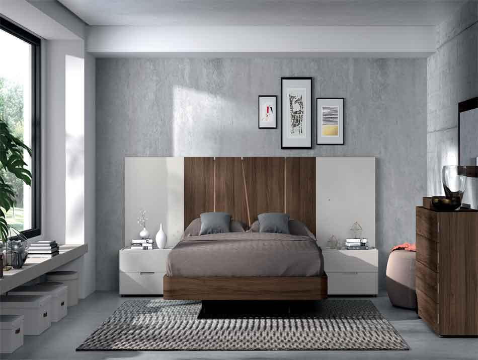 Corps des meubles : Panneaux de particules mélaminées recouverts de papier décor uni ou imitation bois Information centrale : Photos non contractuelles Articles vendus séparément Descriptif : Tête de lit avec panneaux latéraux en 48cm de large 1 tiroir couleur 1 laqué, couleur 2 et 3 coloris de base et poignée verticale coloris au choix inox, blanco ou pizarra Coulisses invisibles réglables avec fermeture amortie Cadre arrondi couleur de base Composition : Tête de lit avec panneaux latétaux Chevet Noa1 caisson côté droit Chevet Noa1 caisson côté gauche Cadre Volada