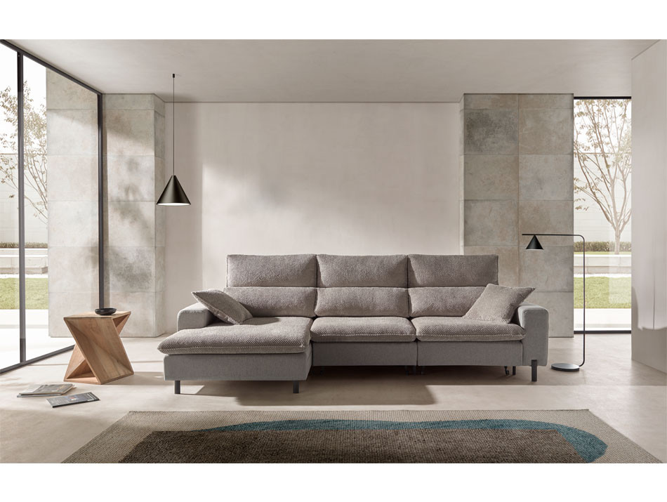 Structure : Bois de pin + planche en bois DM Suspension : Ressort en acier type ZZ et bande élastique 8cm Garnissage : Assise mousse polyuréthane Acofoam recouverte de fibres Dossier avec têtière réglable fibres creuses et siliconées Accoudoirs mousse polyuréthane densité 28 kg/m3 Piètement : Métal coloris brun hauteur 13.5 cm Garantie Atlas : 2 ans Information centrale : Photos non contractuelles Articles vendus séparément Les mesures peuvent varier de plus ou moins 5 cm Revêtement : Bi-matière et bi-ton Tissu gala 100 % polyester, martindale > 35000 Tissu lucca 100 % polyester, martindale > 35000 Composition : Bâtard 3 places assises coulissante accoudoir droit ou gauche avec 1 coussin déco + chaise-longue coffre assise coulissante accoudoir gauche ou droit avec 1 coussin déco