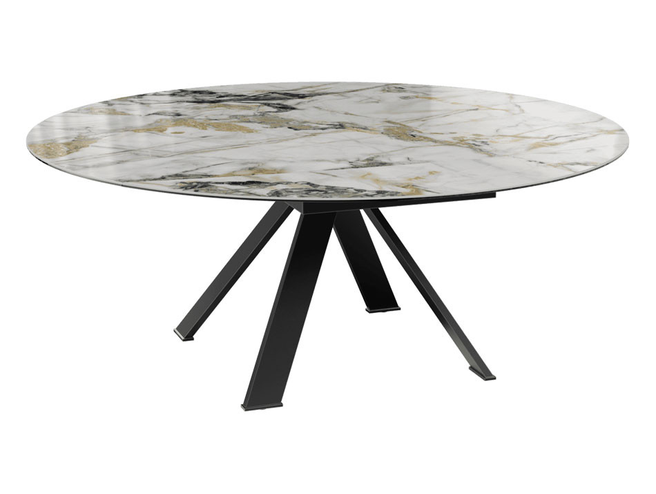 Information centrale : Photos non contractuelles Articles vendus séparément Plateau : Et allonges, rétractables logées sous le plateau, en céramique collée sur du verre Piétement : Piètement acier laqué noir mat