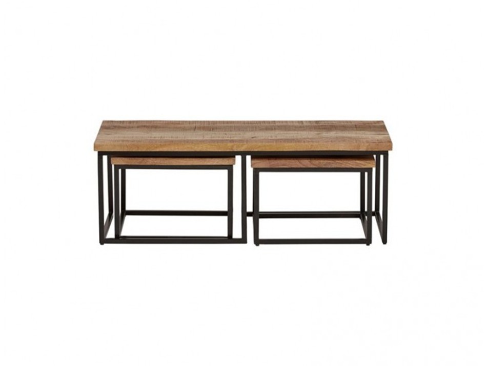 Structure : Métal Plateau : Manguier massif Origine du produit : Inde Information centrale : Photos non contractuelles Articles vendus séparément Matières premières recyclées : Aucunes matières recyclées Recyclabilité : Les meubles sont recyclables à 90 % Les emballages sont recyclables à 50 % Composition : 1 table rectangulaire + 2 tables carrées Dimension : Table rectangulaire : L120xH41xP55 Tables carrées : L50xH35xP50