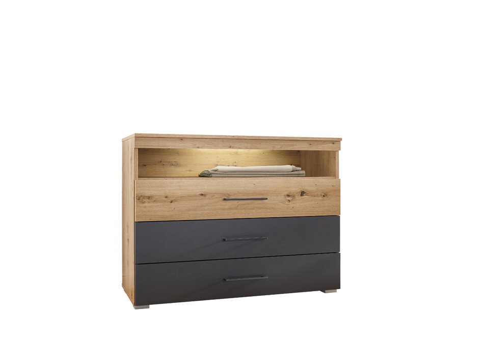 Composition : 3 tiroirs avec glissières métalliques silencieuses montées sur des roulements à billes. Intérieur du meuble en décor imitation Texline.