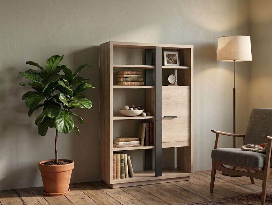 Structure : Placage chêne recouvert avec un mélamine de haute qualité. Chant en ABS de 1 mm, charnières métalliques avec mécanisme de fermeture amortie, meuble assemblé mais démontable.