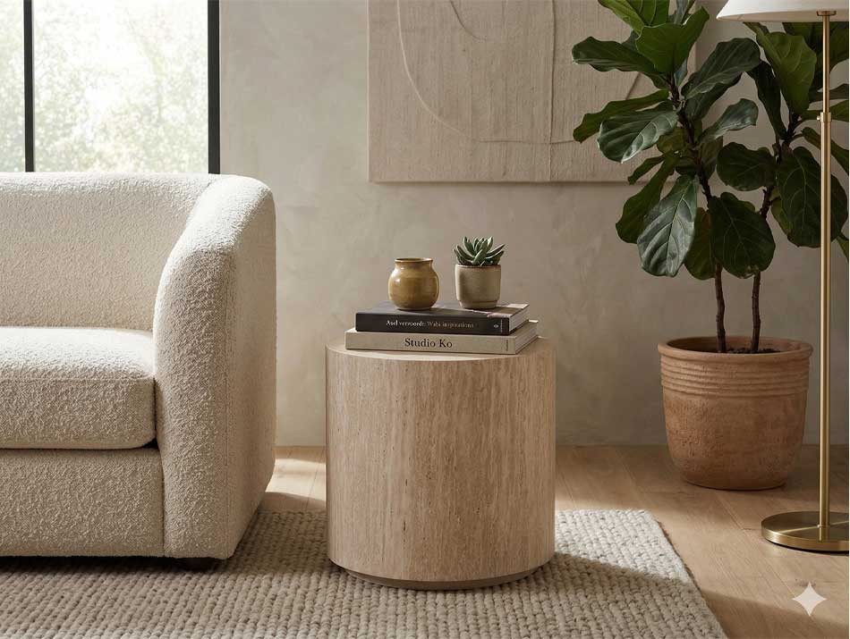 BOUT DE CANAPÉ ROND TRAVERTIN