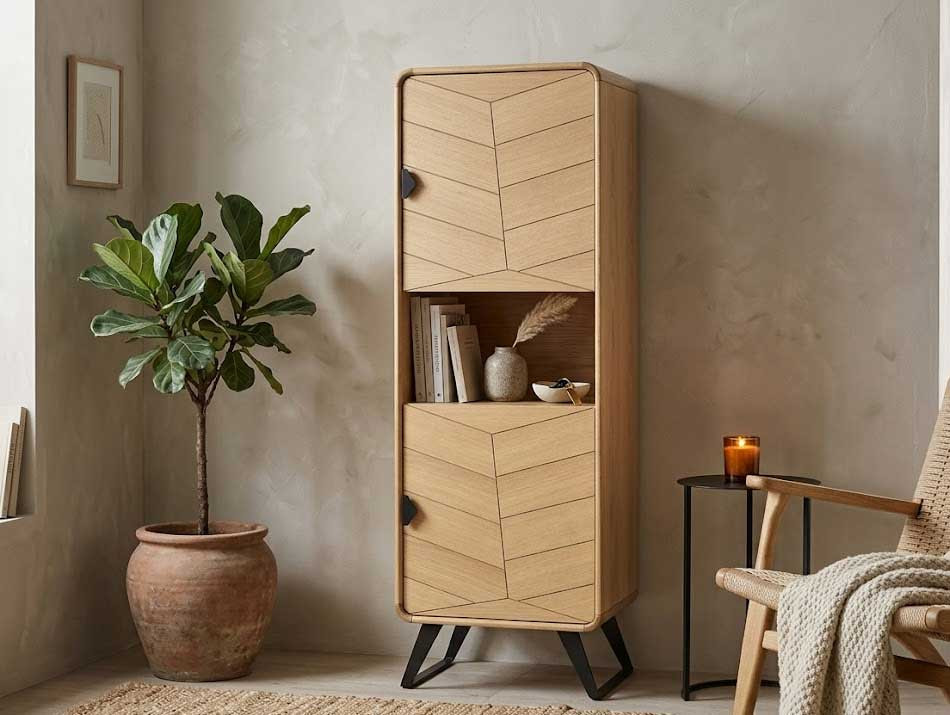 Structure : Panneaux de particules revêtus de placage chêne avec décor façon chevron (portes)