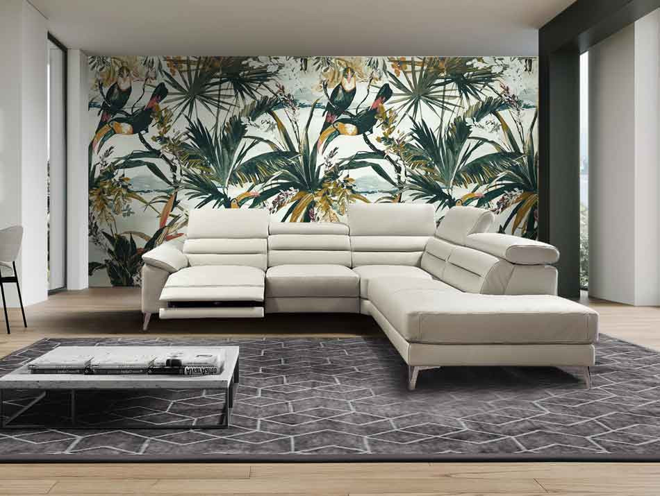 Composition : 1 bâtard 3 places avec 1 relaxation électrique, têtières réglables accoudoir droit ou gauche, 1 angle terminal gauche ou droit avec têtières réglables