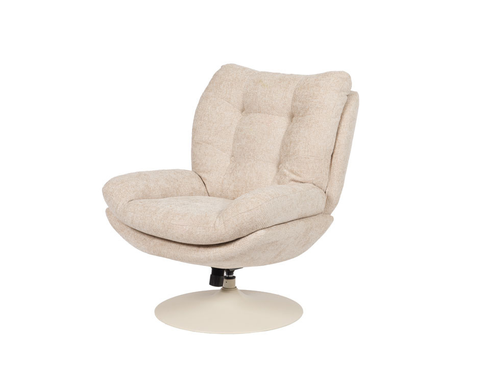 Description : Base métal pivotante. Assise et dossier mousse haute densité 25 kg/m3 recouverts de tissu 100 % polyester