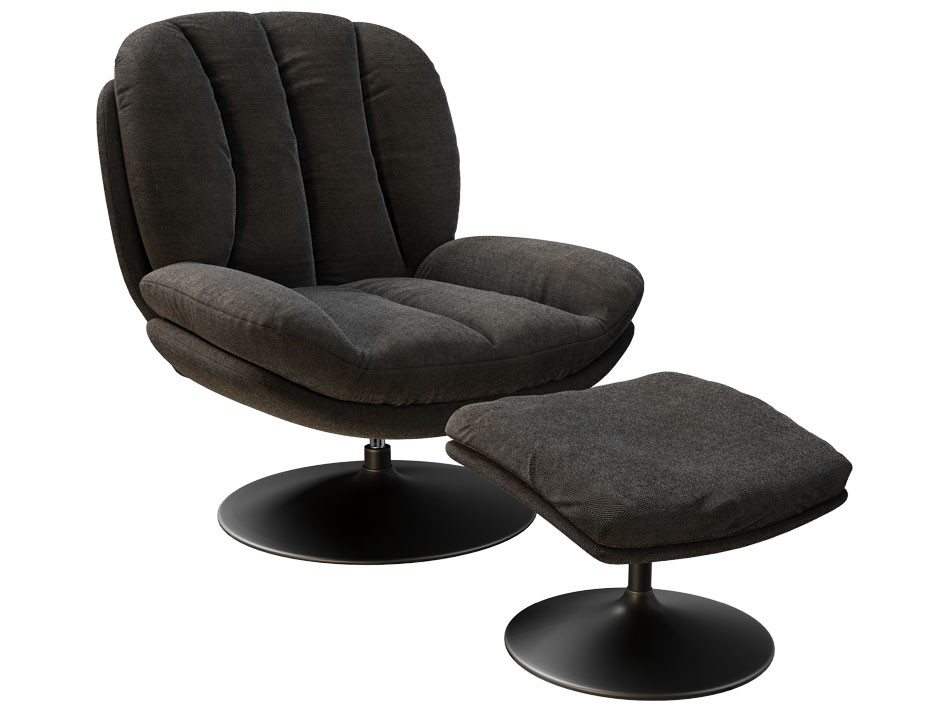 Composition : Fauteuil pivotant avec pied central socle rond + pouf pied central socle rond