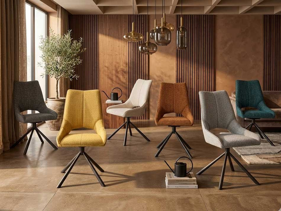 Piètement : Métal coloris bois naturel ou noir, central avec 4 branches pivotant 180°,
