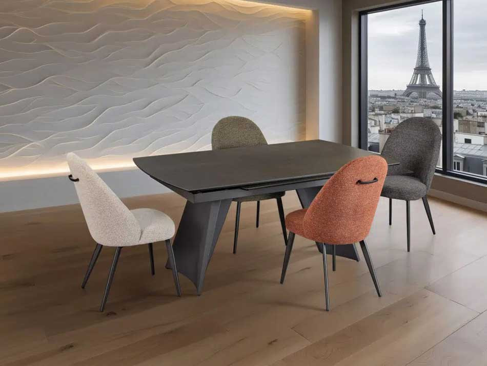 Plateau : + allonge céramique 3 mm collée sur un verre d'épaisseur 10 mm, épaisseur totale 13 mm pour céramique iron, ton chêne naturel, Gris nuancé et ton pierre et céramique 6 mm collée sur un verre d'épaisseur 8 mm, épaisseur totale14 mm pour la céramique Beige veiné