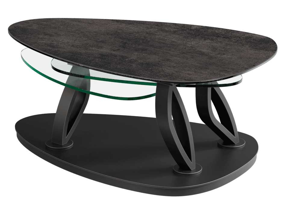 Composition : 1 plateau pivotant céramique épaisseur 3 cm collée sur verre épaisseur 6 mm