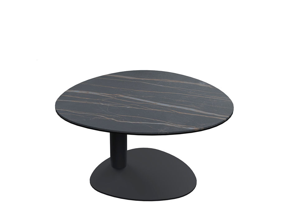 Plateau : Forme de pétale en céramique 6 mm collée sur un verre d'épaisseur 6 mm, épaisseur totale 12 mm pour coloris beige veiné et céramique 6 mm collée sur un verre d'épaisseur 3 mm, épaisseur totale 9 mm pour le coloris gris mat veiné cuivré