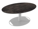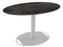 Piétement : Central avec socle ovale en acier coloris laqué noir mat ou coloris laqué blanc mat