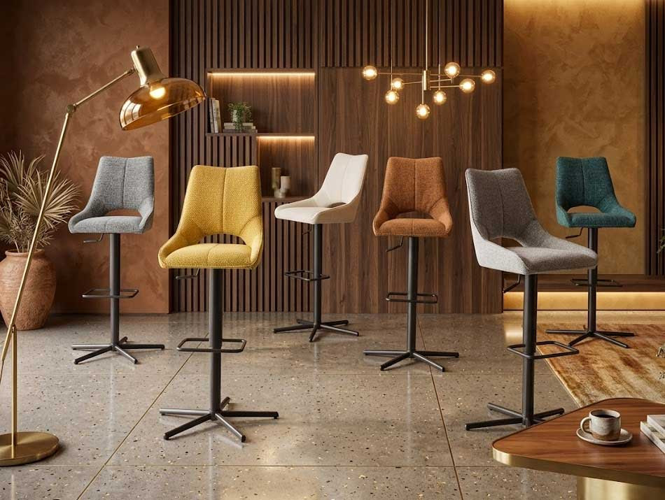 Piètement : Etoile avec 5 branches pivotant 360° et réglable avec piston en hauteur de 90 cm à 119 cm